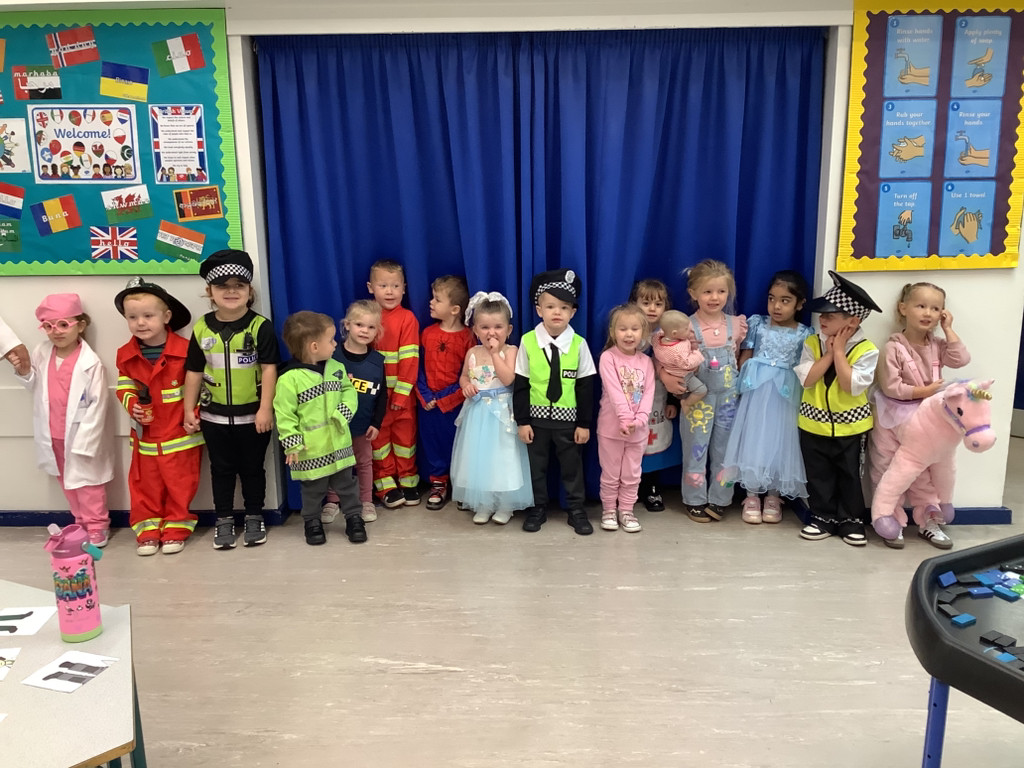 To introduce our topic 'All About Me' the children came to Nursery dressed as what they would like to be when they are older. We had police officers, fire officers and even a unicorn! The children all looked fantastic. During this topic we have lots of exciting things planned such as visiting the fire station and exploring our local area.