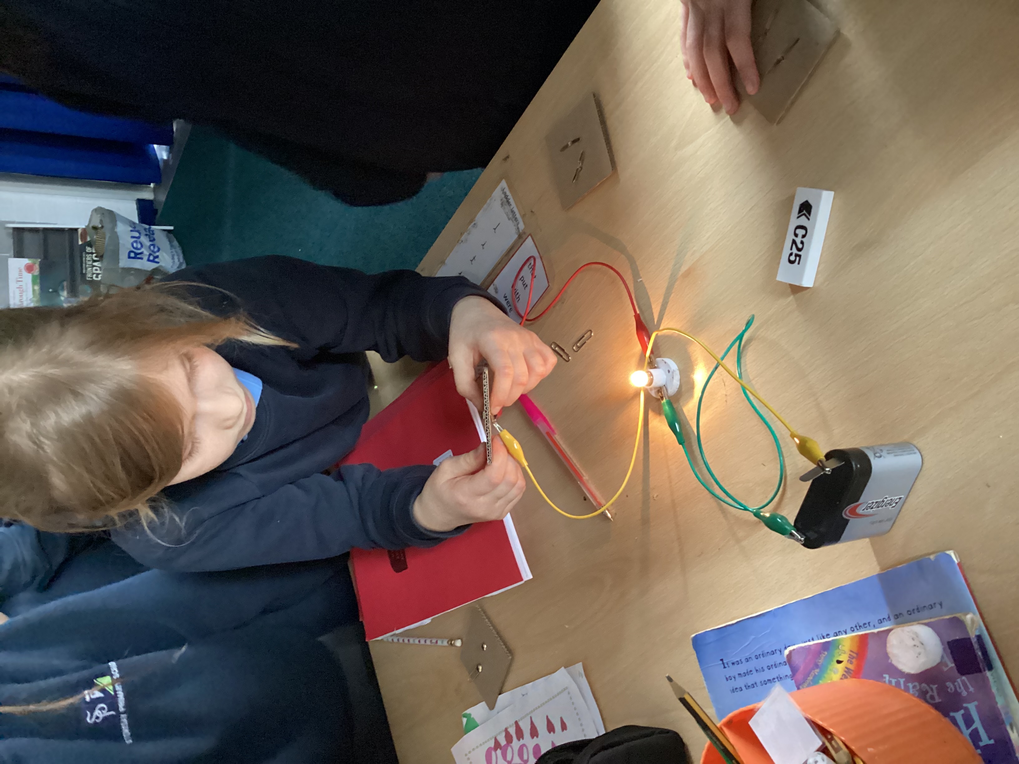 In their recent Science lessons, Year 3/4 have been investigating how electricity works by building and testing simple circuits. Working collaboratively, children explored how to connect components such as wires, bulbs and batteries to create complete circuits, discovering what is needed to make a bulb light successfully. They showed great curiosity and determination as they tested different combinations, identified faults and refined their ideas.
